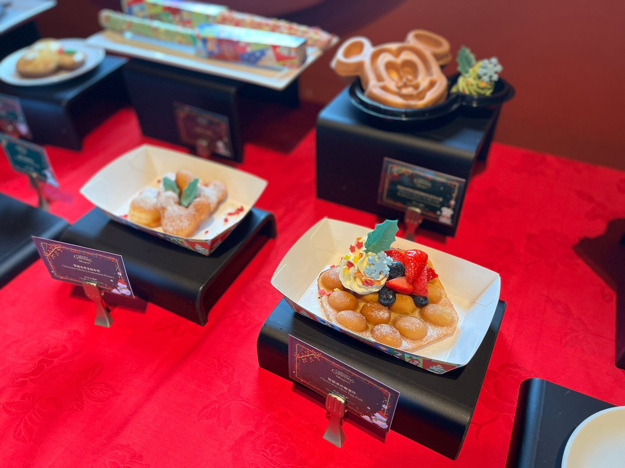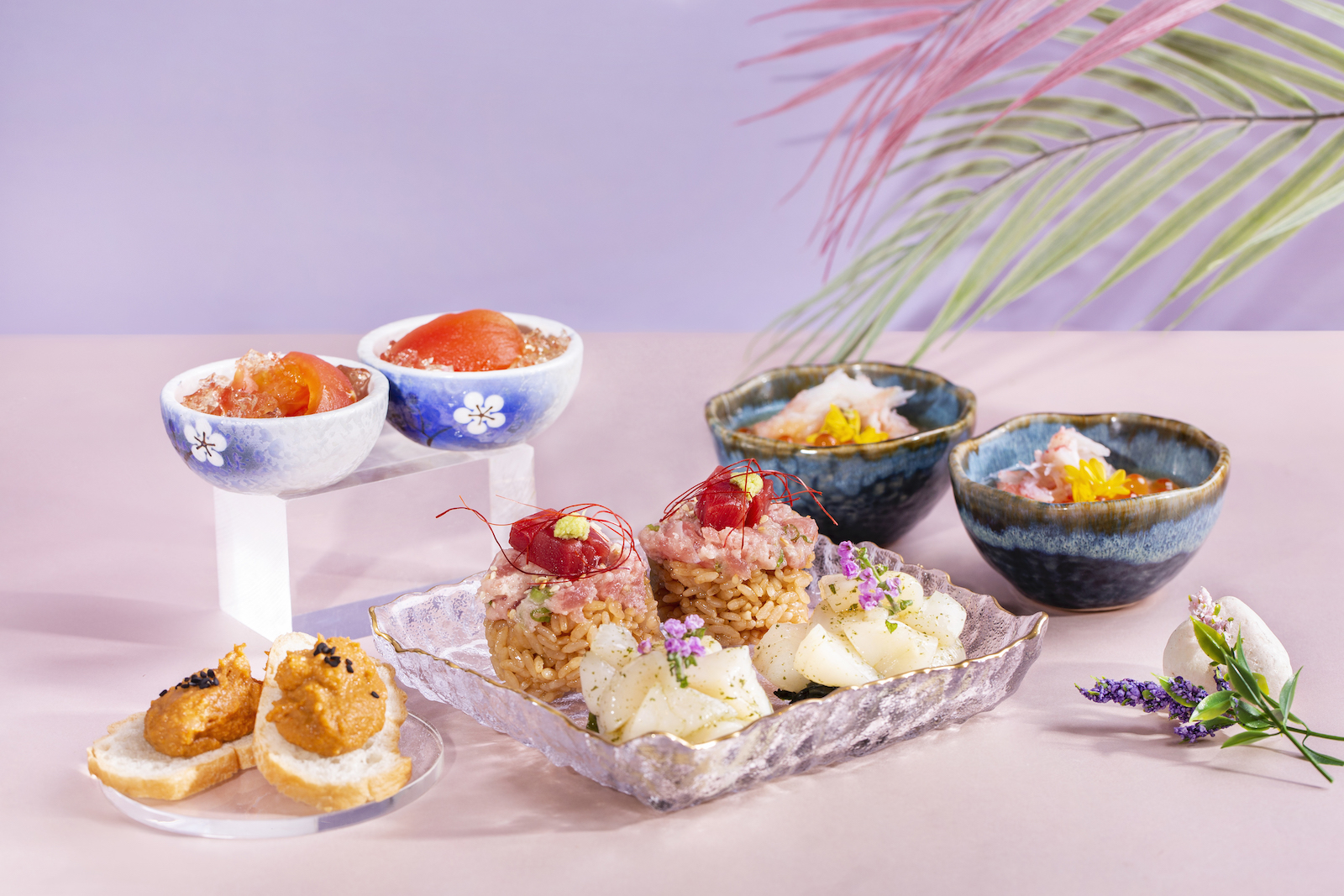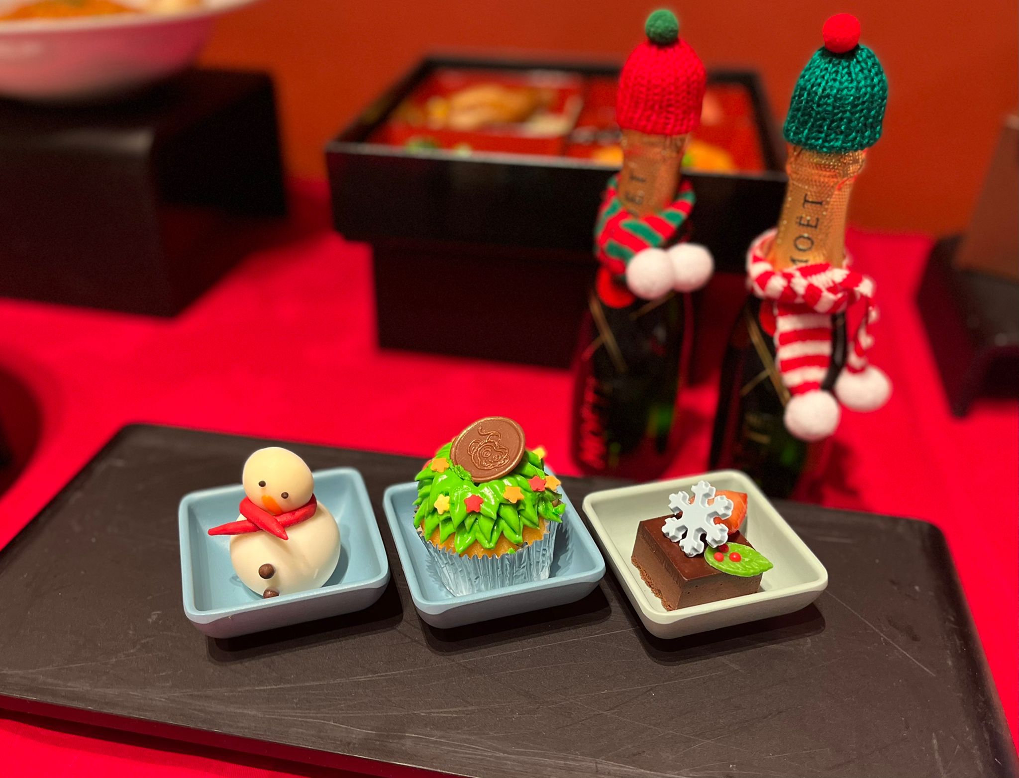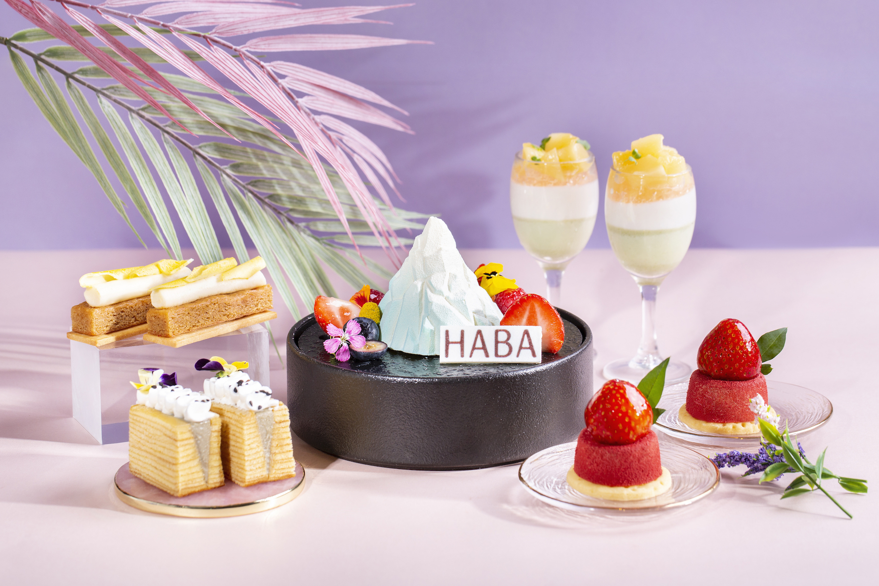 - 其他甜點有北海道帆立貝柚子紫蘇汁、福岡番茄蜜糖漬、鮟鱇魚肝醬多士、北海道赤肉蜜瓜雲呢嗱慕絲蛋糕、白桃玄米茶北海道牛乳布甸、黃豆粉柚子慕絲蛋糕、年輪蛋糕伴黑芝麻忌廉、朱古力伊予柑鬆餅等。