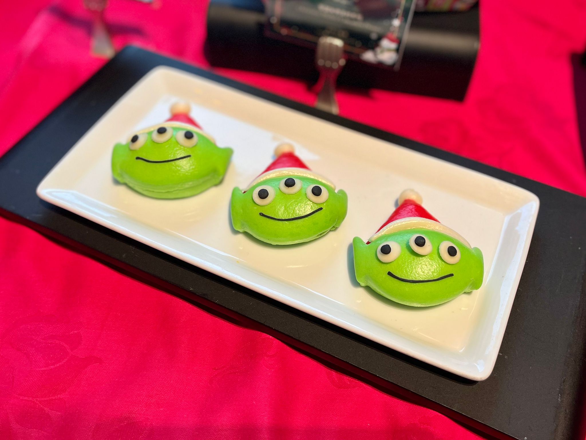 - 「香印提子香檳慕絲」外層是青綠色的朱古力鏡面,內餡是充滿酒香的香檳慕絲包裹著香印提子蓉,酒香溢滿口腔,酸甜開胃。
