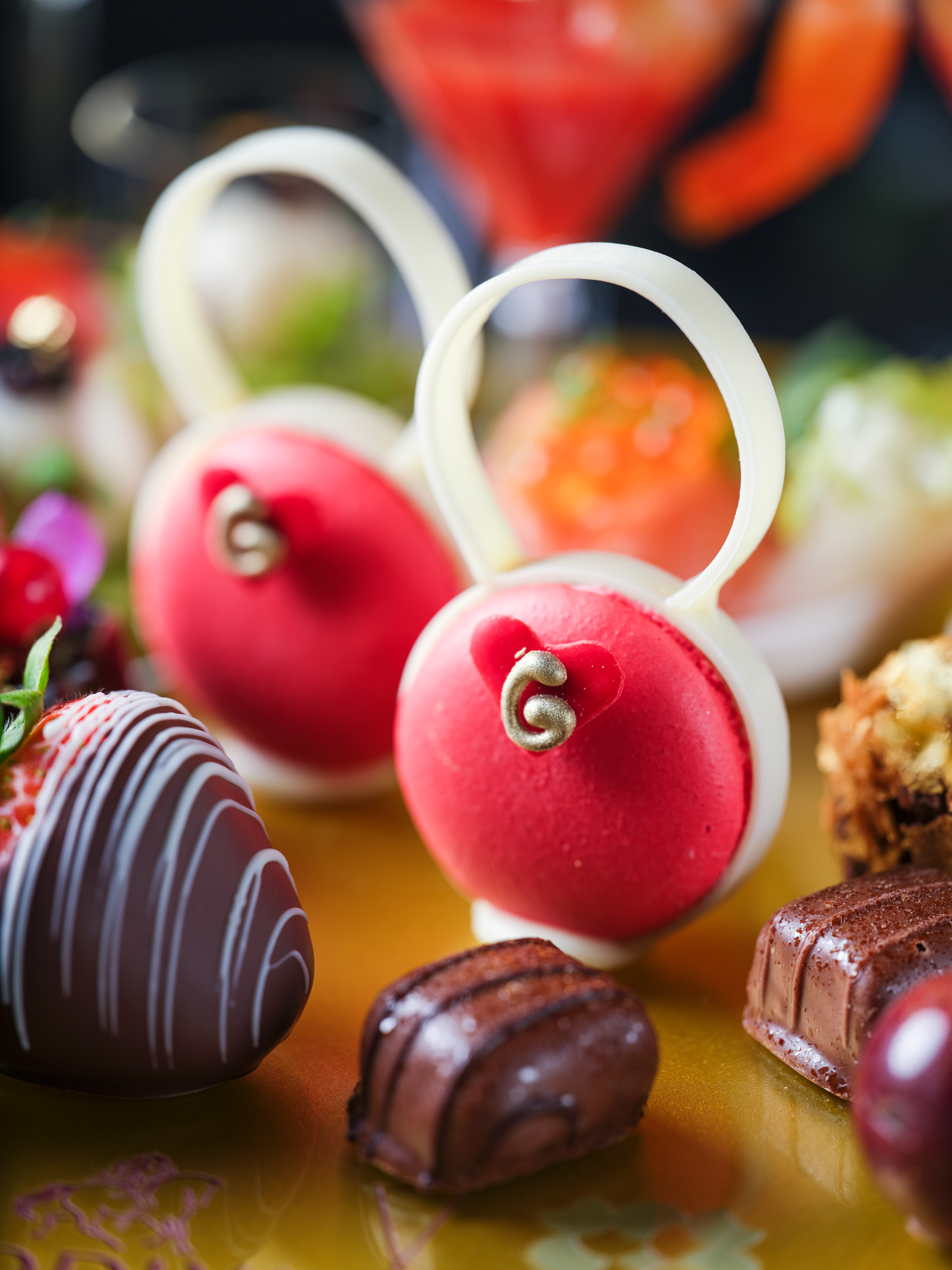 - 其他甜點有酒漬櫻桃黑朱古力、自家製碎榛果朱古力、甜蝦血色瑪莉、挪威煙三文魚伴三文魚子、辣肉腸橄欖串、Impossible植物肉他他及GODIVA朱古力等。