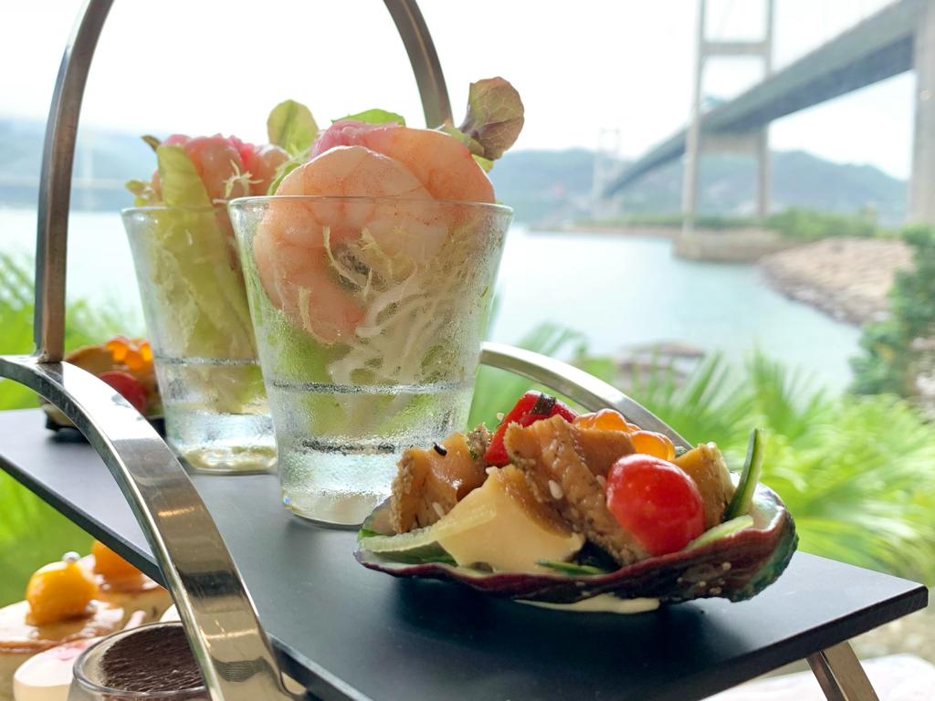 挪亞方舟度假酒店推出「品味華麗逸誌海景下午茶」,一共有10款鹹甜點,用了不少上乘食材入饌,款式非常精緻。不過餐廳的景色更是這裡最大賣點,從落地玻璃向外望就能望見青馬大橋和海景,是打卡的不二之選!