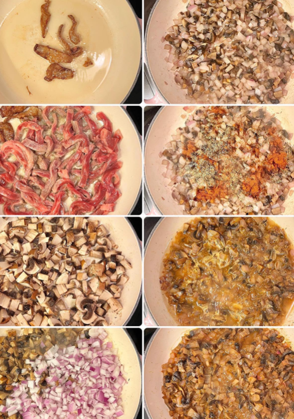 - 加入剩餘調味料,煮至收汁到理想濃稠度,上碟,鋪入麵包裡即可。