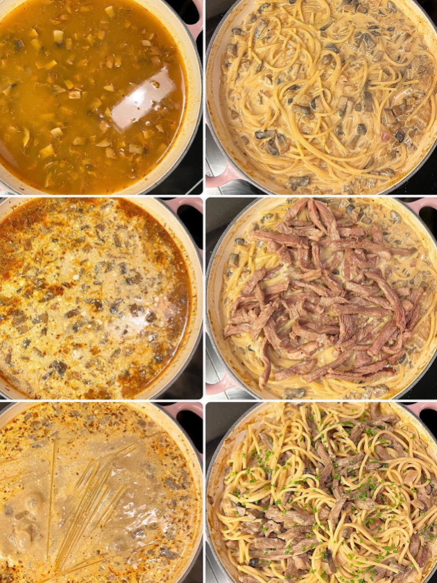 - 把方包用白鑊煎脆,然後把碎蛋和燒汁牛肉夾在麵包中,完成