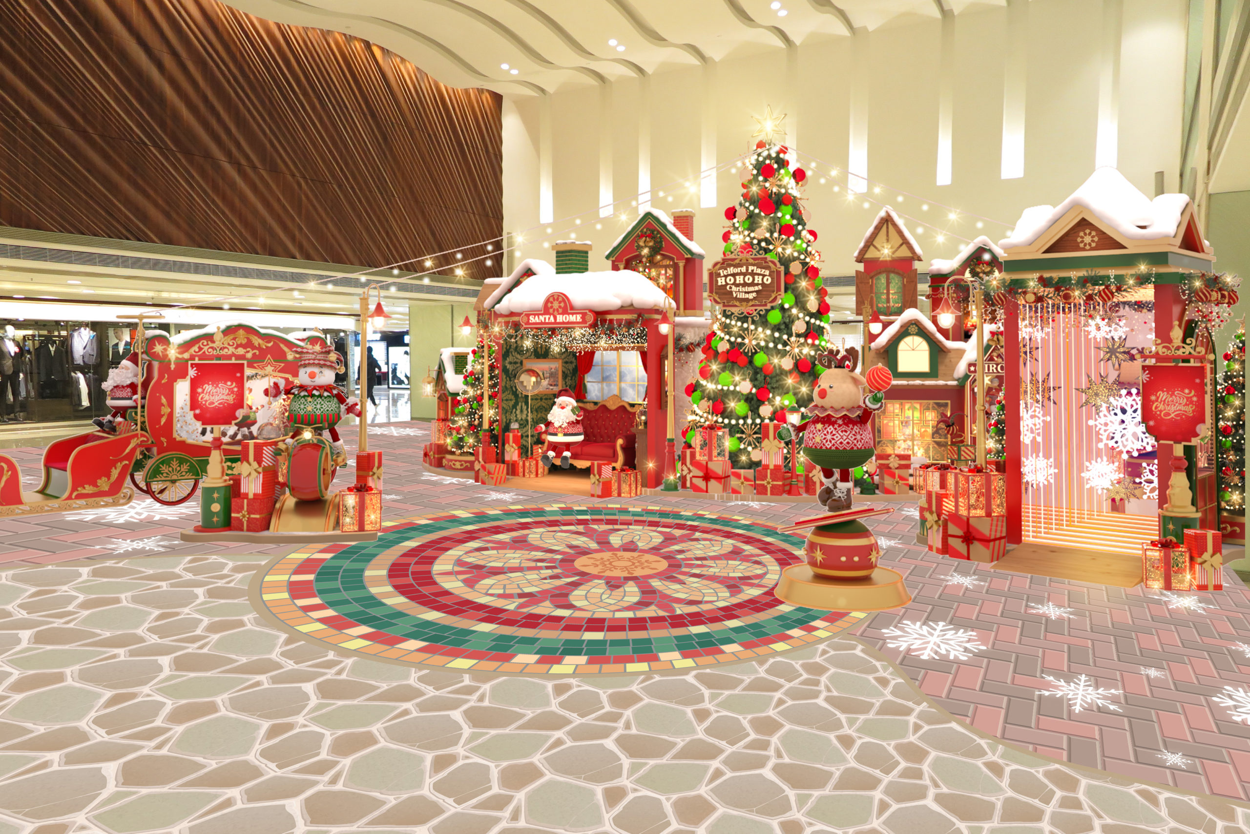 德福廣場《聖誕歡樂小鎮》:5米高的巨型閃亮聖誕樹、小雪人及聖誕鹿在小鎮街上表演馬戲雜耍