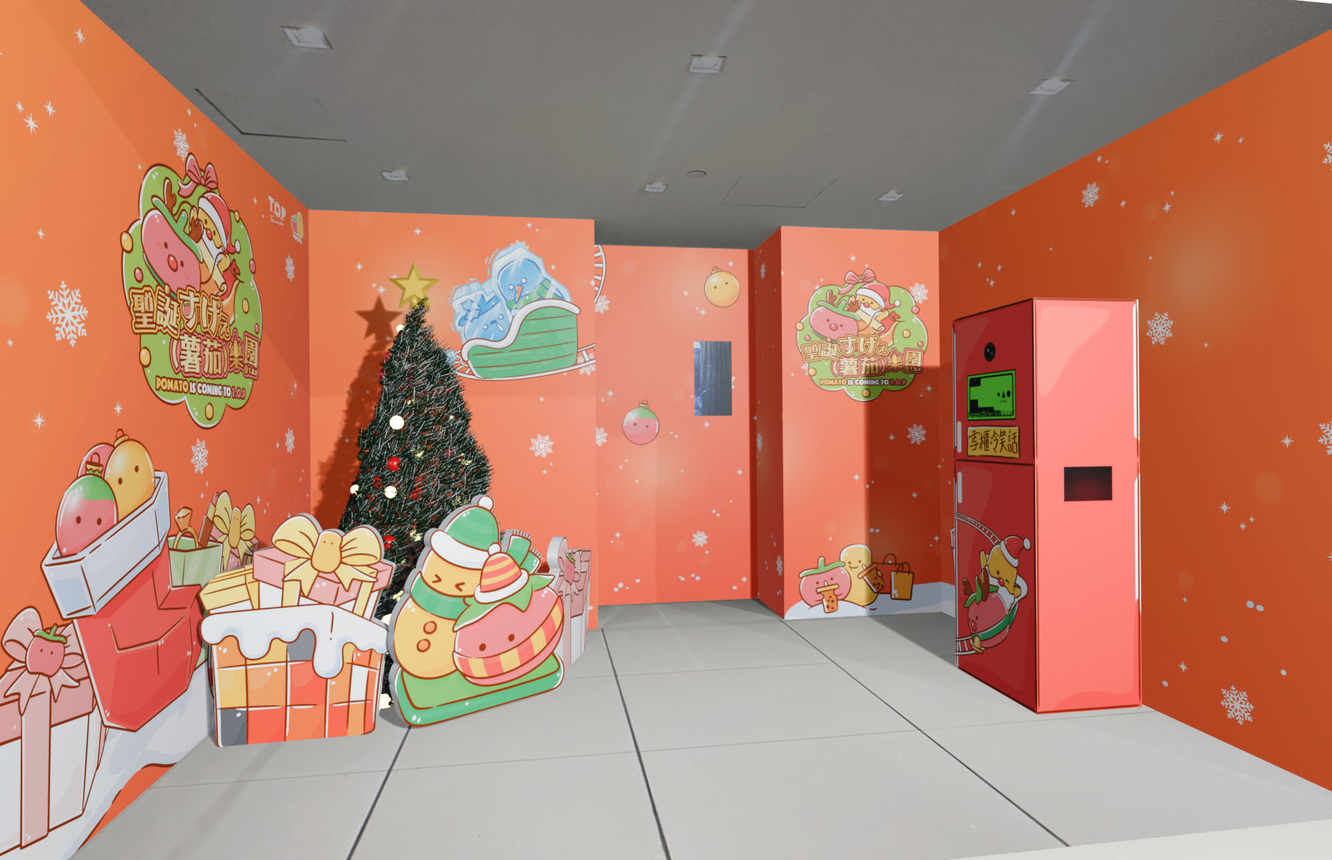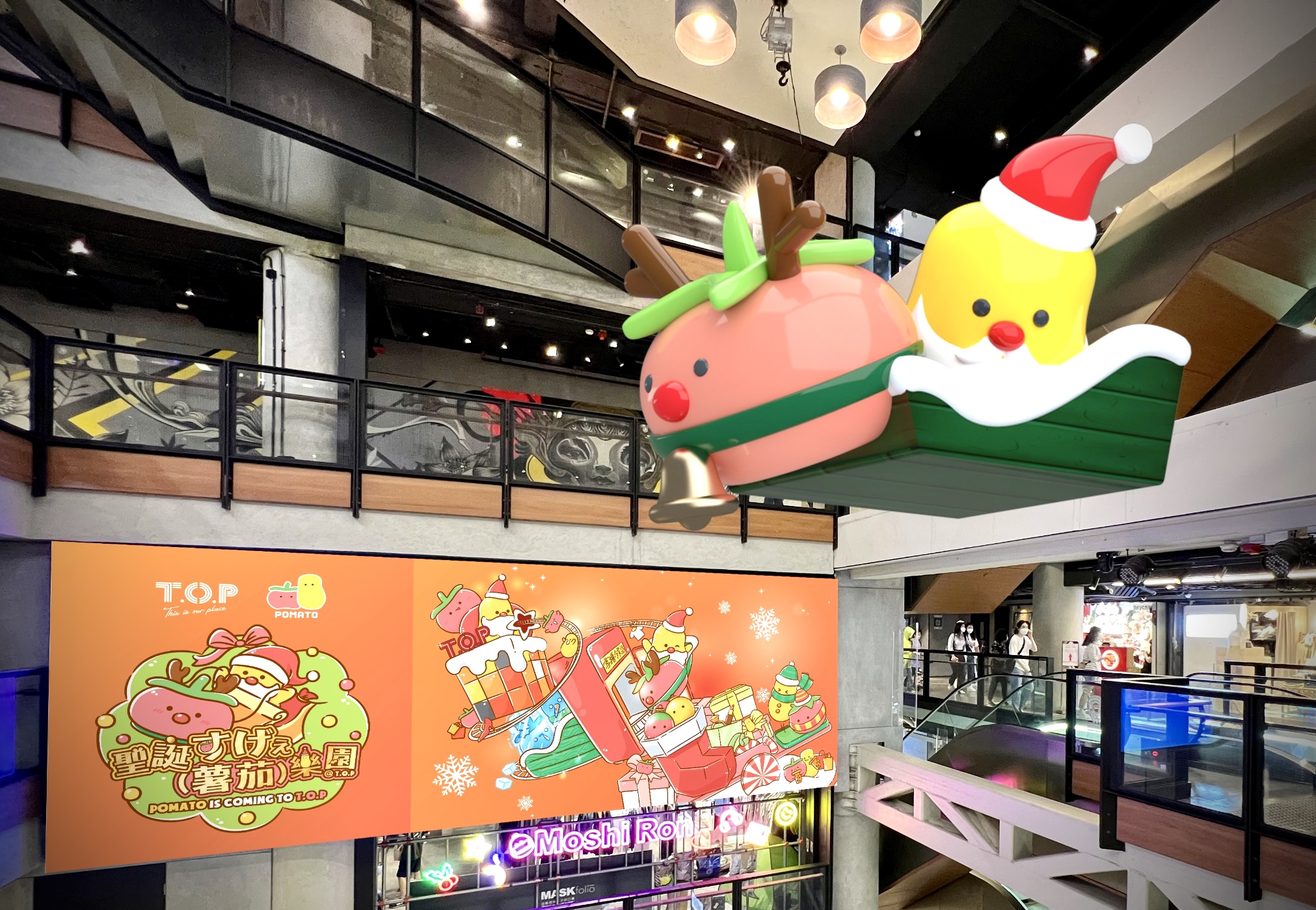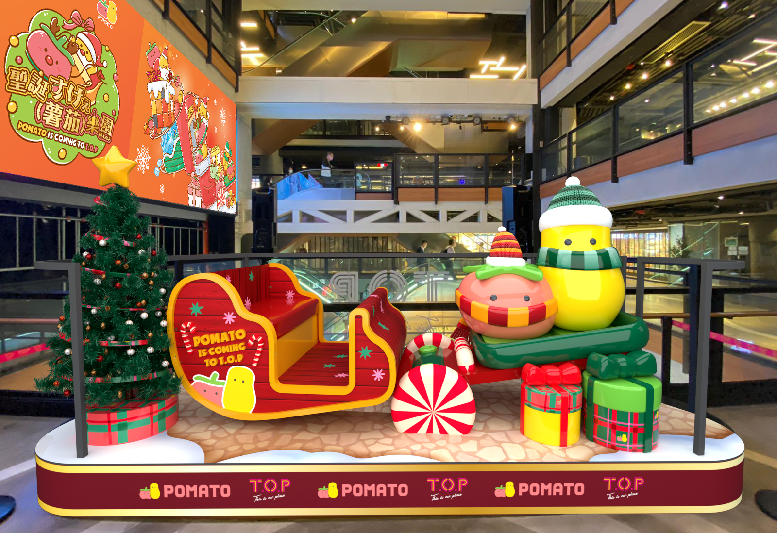 T.O.P This is Our Place和本地超人氣網絡團體Pomato小薯茄合作,推出「聖誕すげえ(薯茄)樂園 @T.O.P」,內有多個打卡位及一系列主題活動!今次活動會有五大打卡位及一系列互動遊戲,例如聖誕Look亮相的薯茄化身成三米高薯仔聖誕老⼈及蕃茄鹿仔於空中花園大派禮物、七位小薯茄幕前成員的1:1人形立牌來個大集合、薯茄雪橇搖搖板等等!另外,當然少不了小薯茄的經典環節《雪櫃冷笑話》,Snapio專程於T.O.P打造聖誕版雪櫃冷笑話場景,全場設有兩大小薯茄Snapio 照相館,除了位於3樓的聖誕版雪櫃冷笑話場景外,4樓亦設有Snapio 照相機!